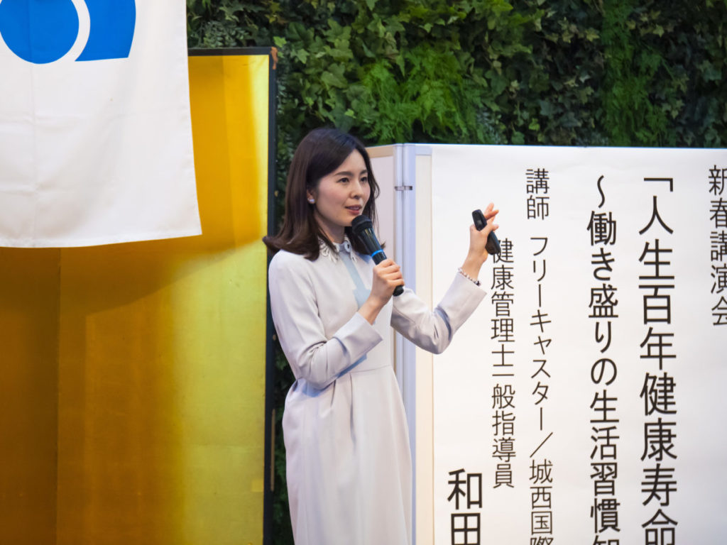 新春講演会 2022年2月8日 2年ぶりの新春講演会を開催しました 人生100年健康寿命のヒント 和田奈美佳氏 感染症対策を十分にとって「新春講演会」-人生100年健康寿命のヒント-と題して和田奈美佳先生に講演していただきました 新春講演会 和田奈美佳先生 司会 長谷川研修副委員長 和田先生の熱心な説明 皆さんもご一緒に 謝辞 松永研修委員長